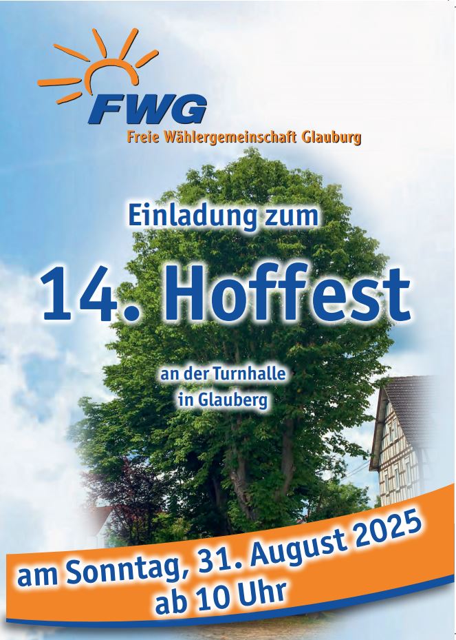 Die Freie Wählergemeinschaft Glauburg lädt zum traditionell alle zwei Jahre stattfindenden Hoffest ein.